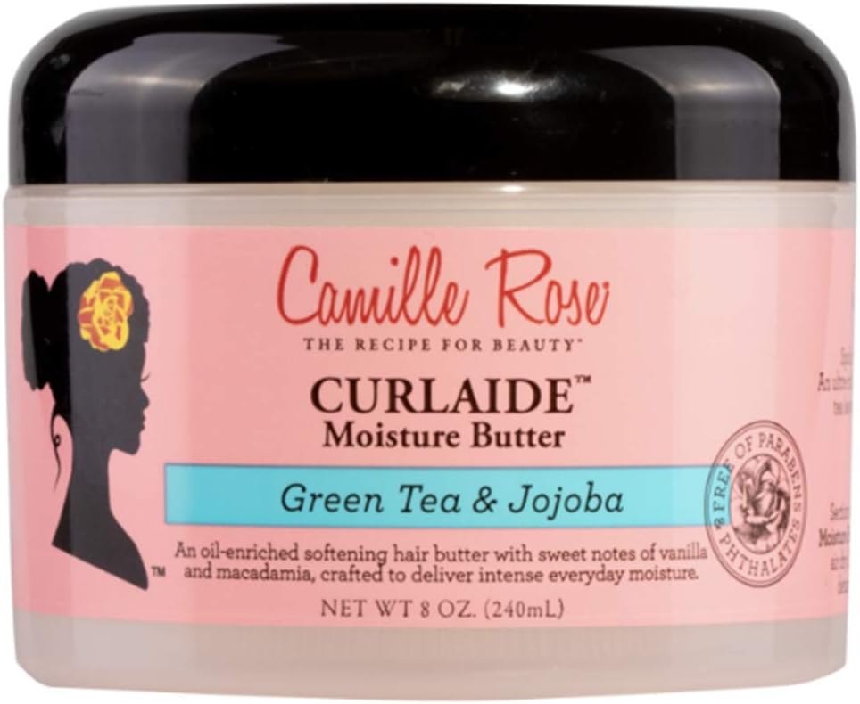 With green tea and jojoba oil, this butter-cream hybrid provides moisture while soothing the scalp. It doubles as a twist-out styler.
