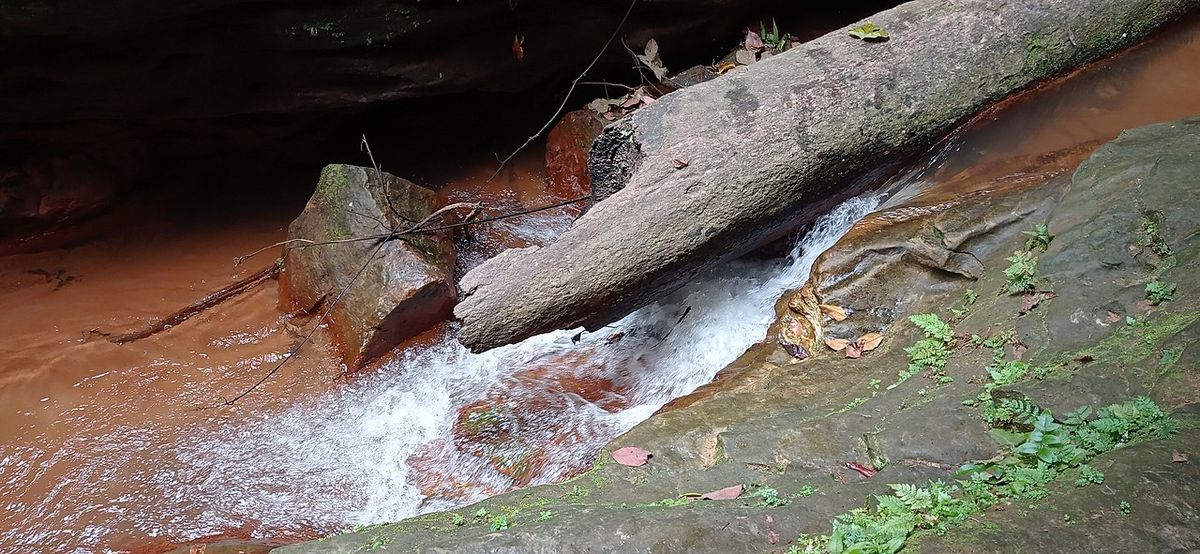 Set against lush greenery, Awhum’s waterfall flows from a towering cliff, creating a serene environment for visitors.